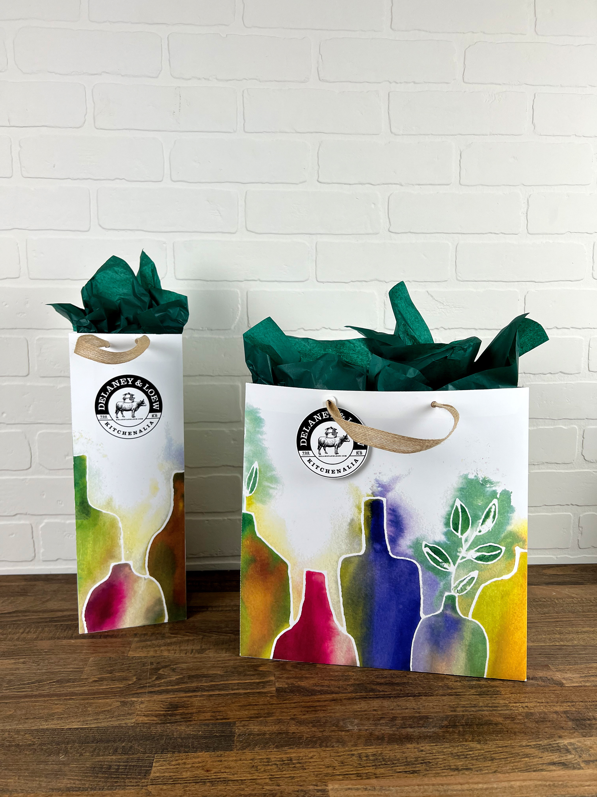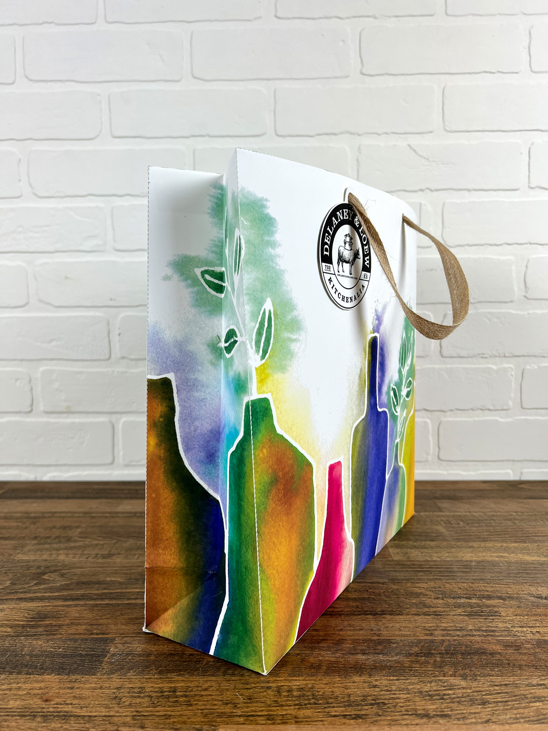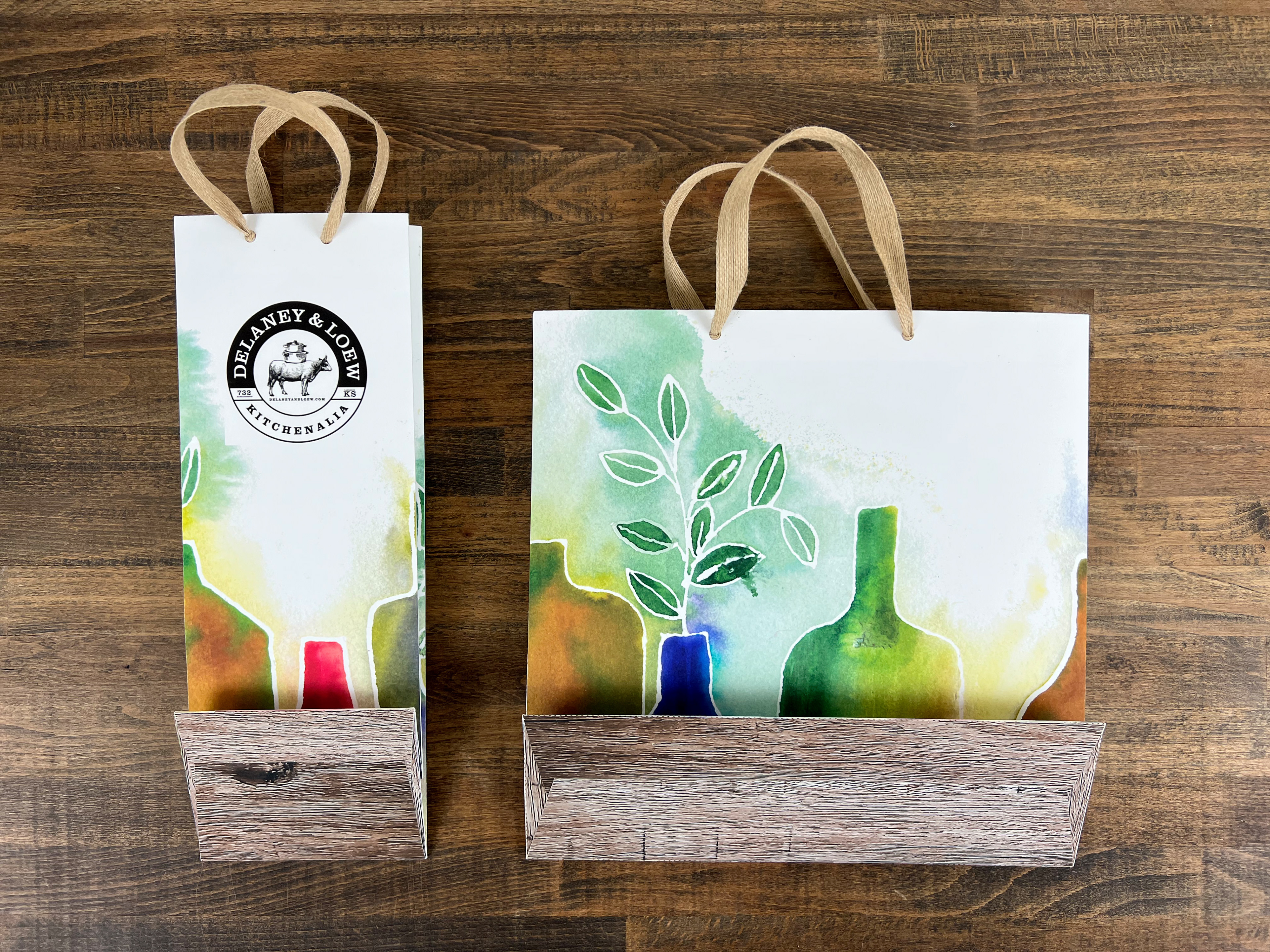 Using watercolor as the primary medium, this bag was created for potential use at Delaney & Loew, a kitchen gift store in Lawrence, KS.